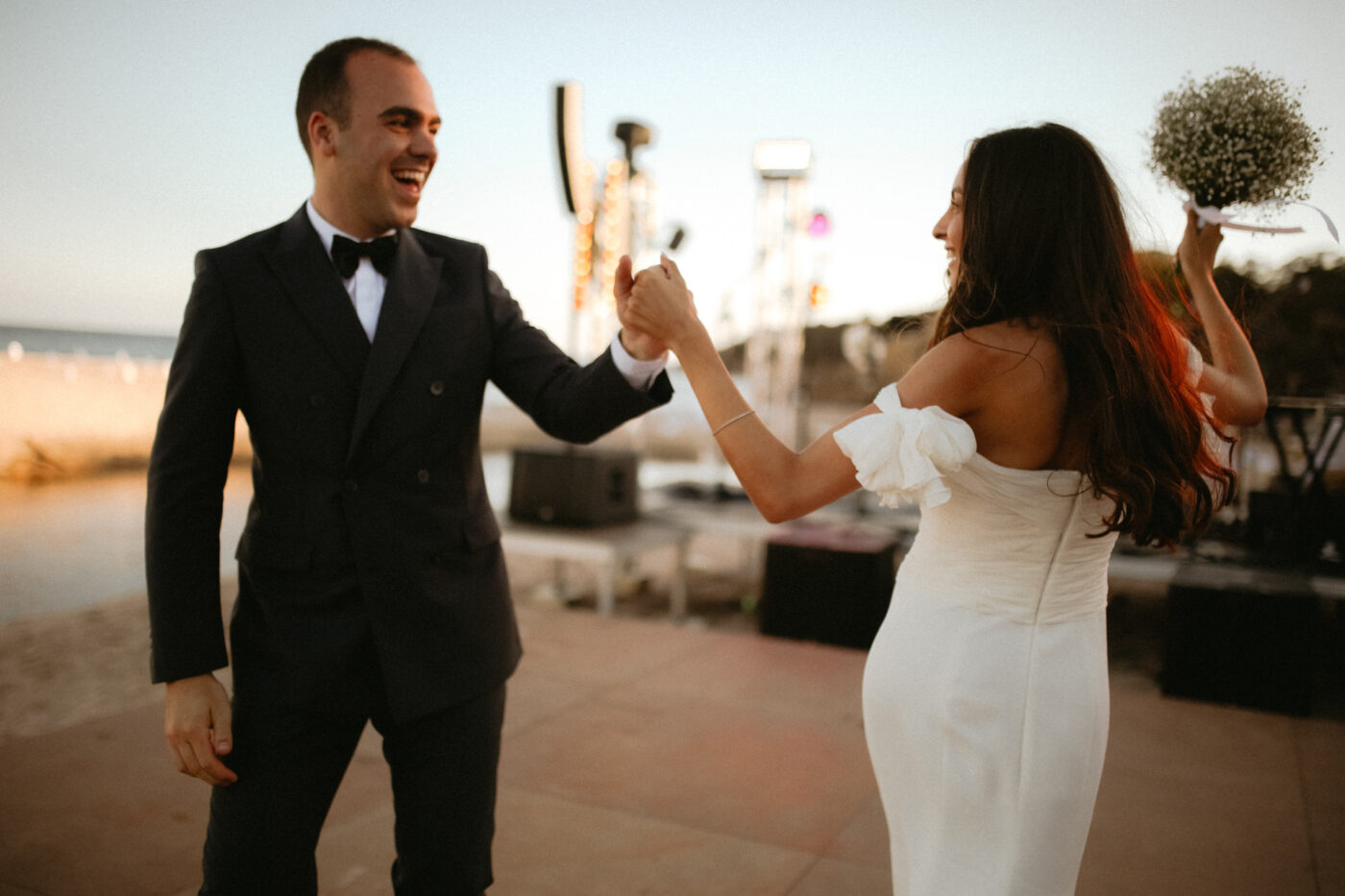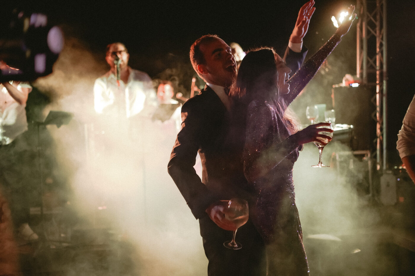 Une réception sur la plage corse, une robe à paillette pour le dancefloor et l’authenticité de deux natifs de l’île de beauté qui s’aiment depuis des années