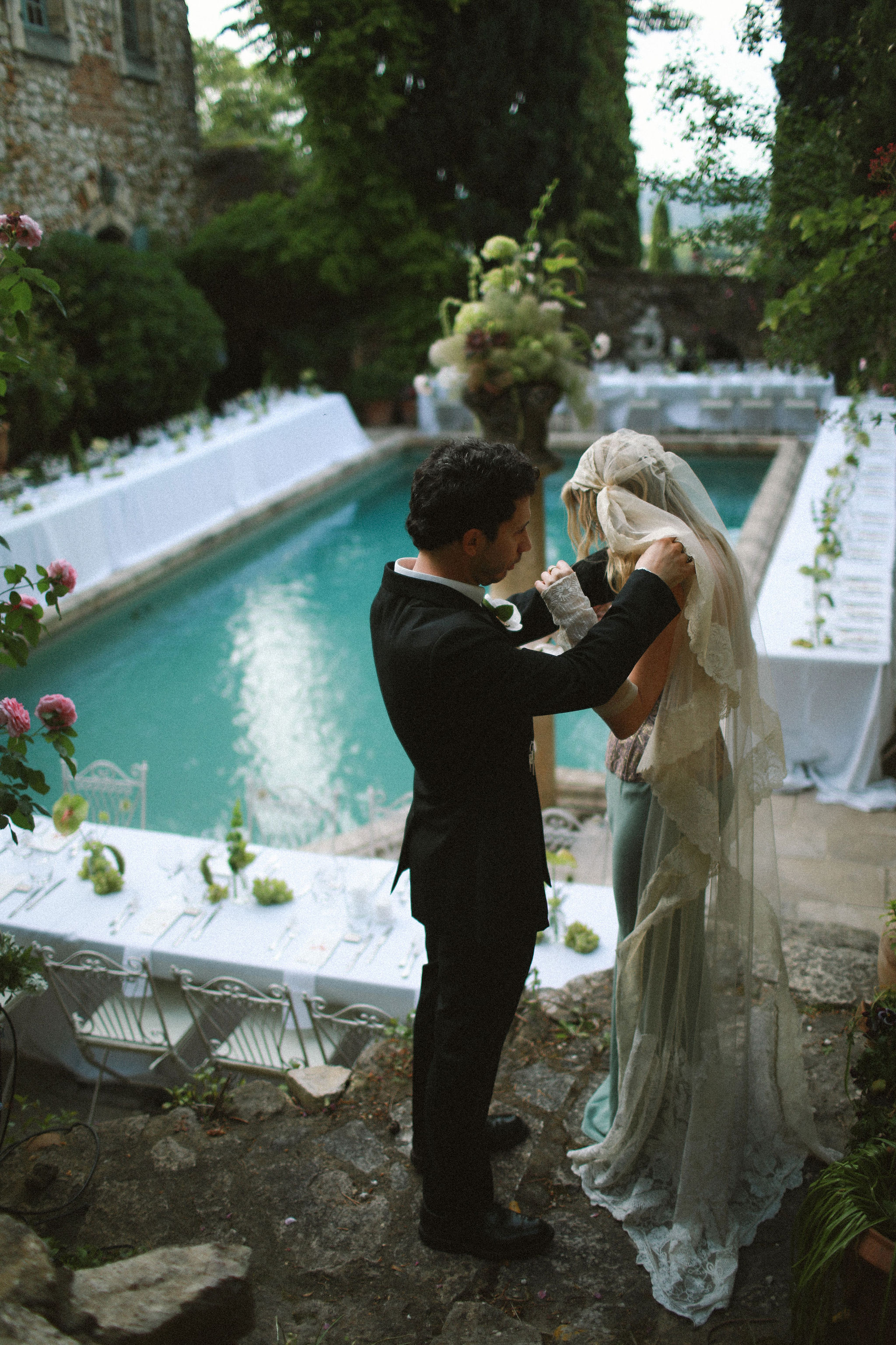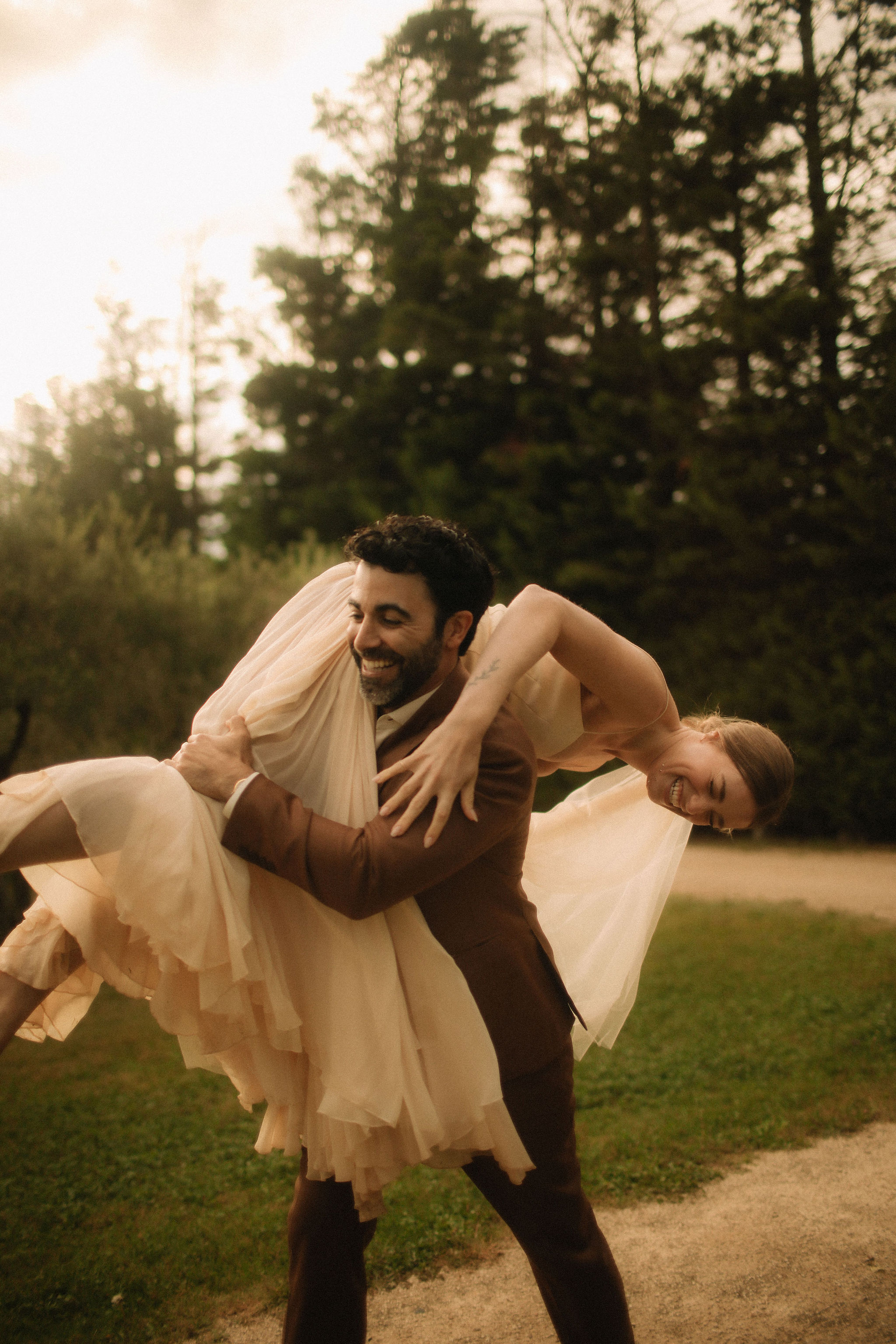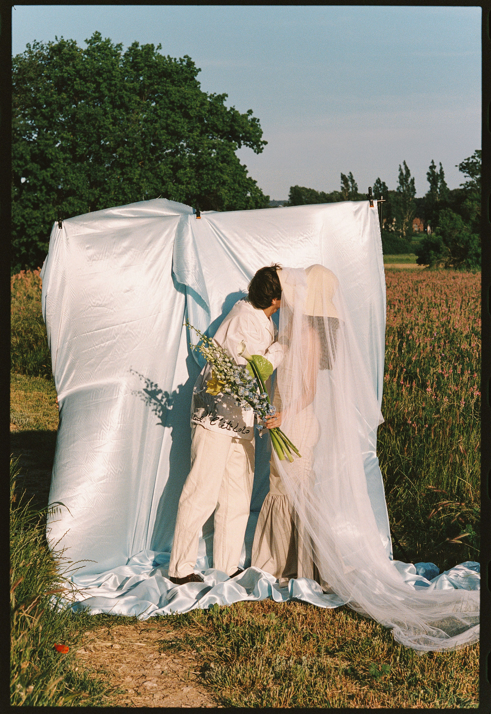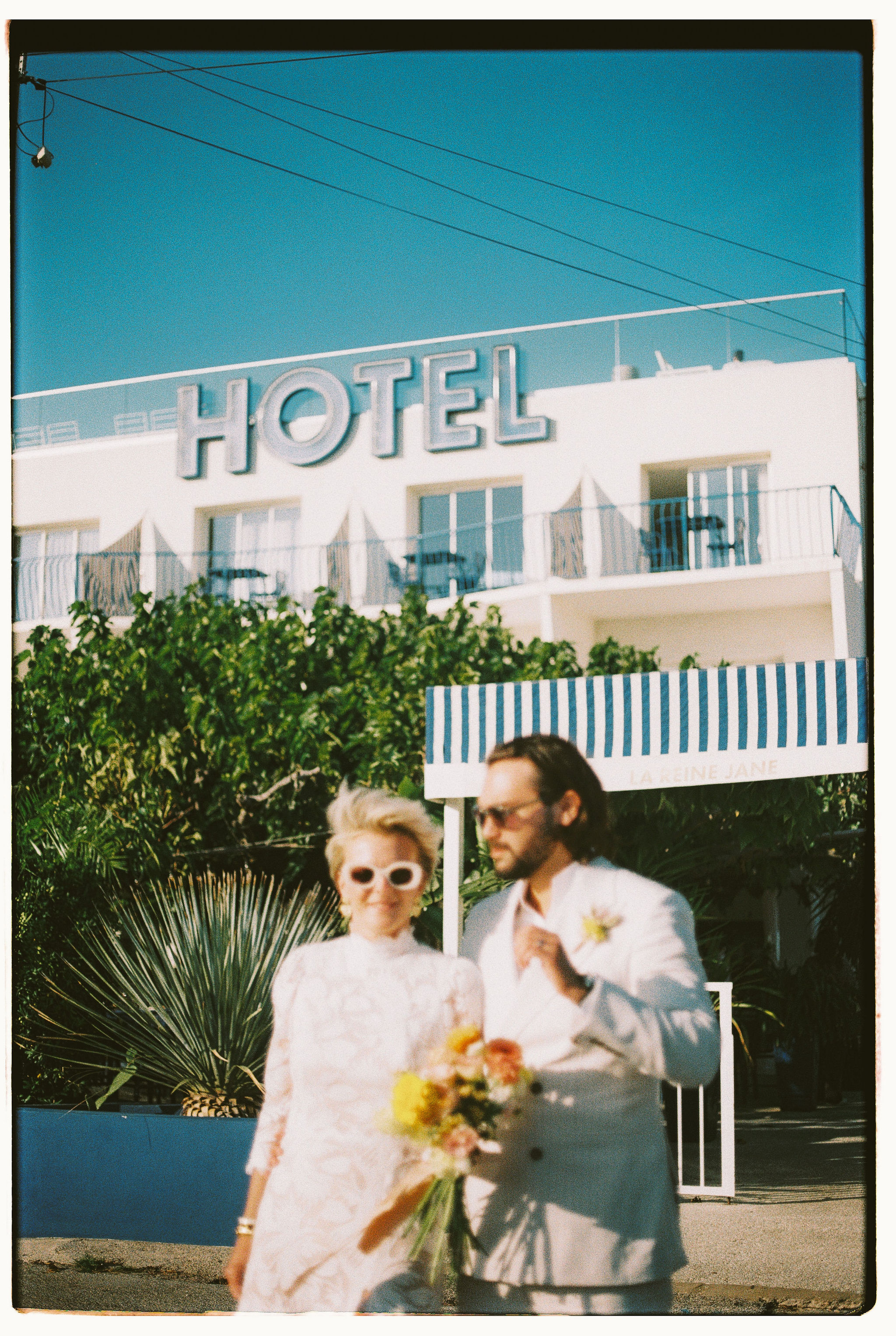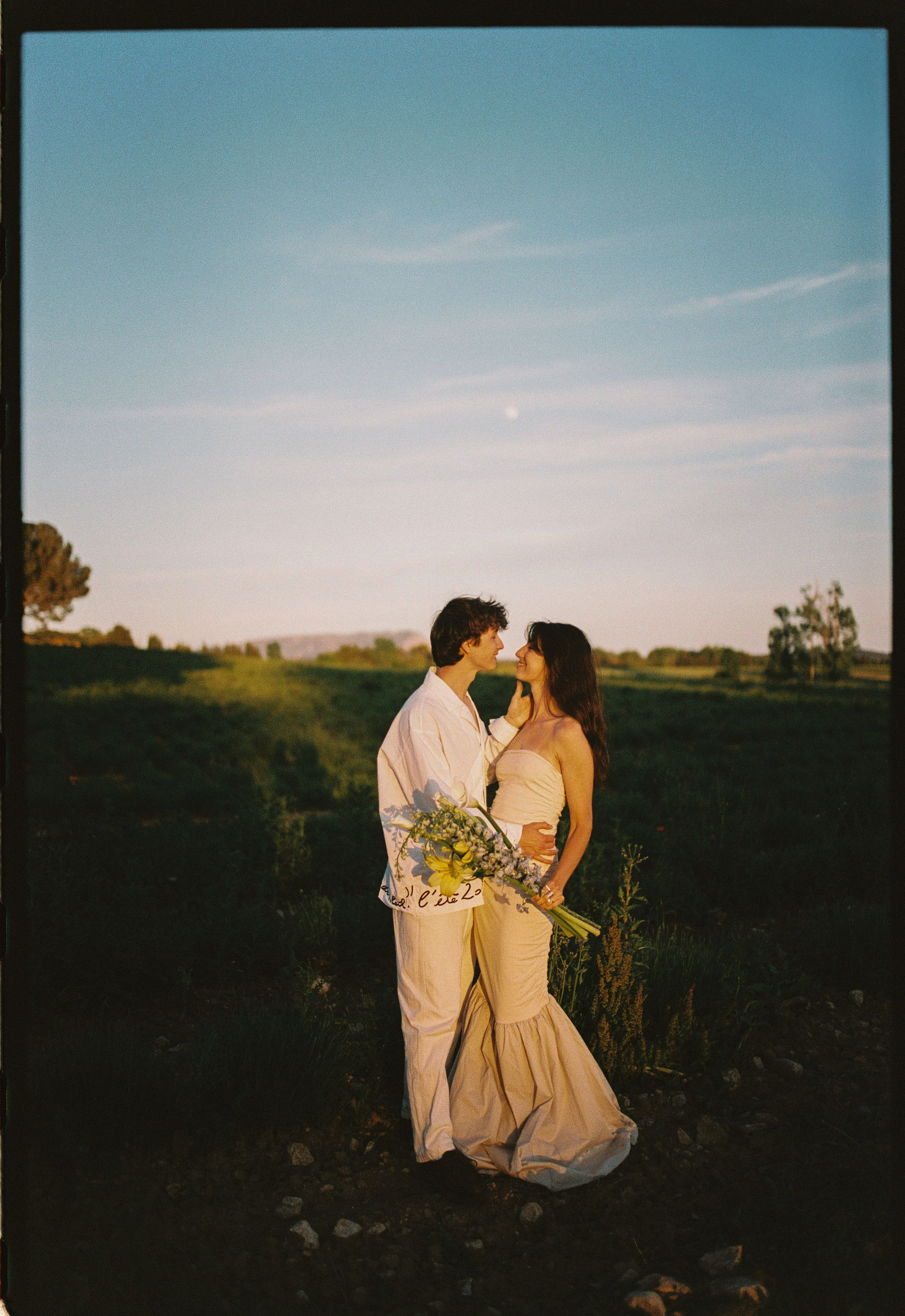 FR// J’aime le cliché de notre Provence, la générosité italienne, les couchers de soleil marseillais, les marchés aux fleurs, l’art moderne sous les pins à la Fondation Maeght, l’été indien dans les Baléares. On s’est mariés en Jacquemus, dans le jardin de la bastide provençale où j’ai grandi, avec un apéro style pique-nique entourés de nos proches.