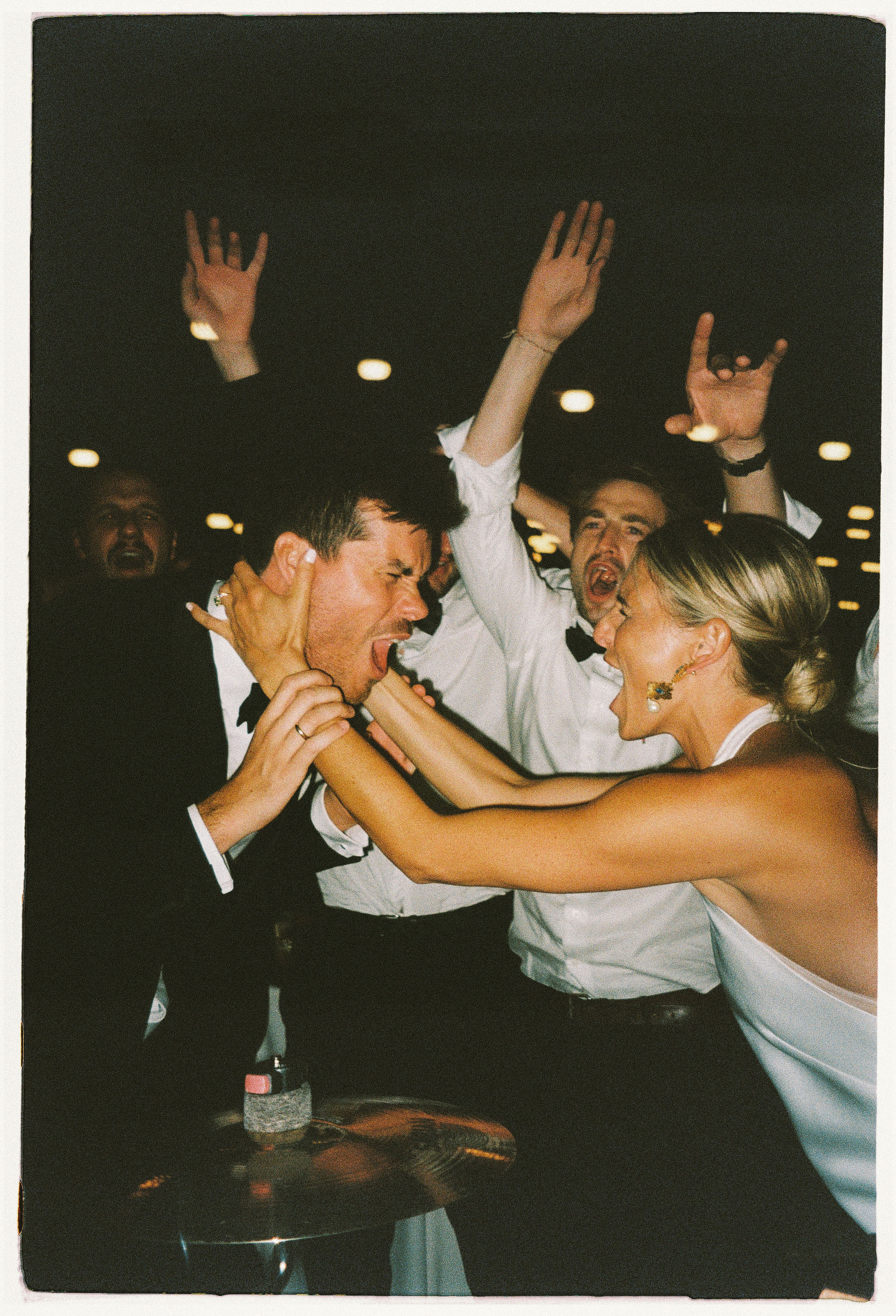 Mais ce qui compte le plus pour moi, c’est de vous connaître vraiment. De comprendre vos gestes, vos liens, votre rythme. Je veux que vous soyez à l’aise, que vous oubliiez l’appareil photo, que vous viviez votre journée pleinement. Je ne suis pas la photographe silencieuse dans un coi: je ris avec vous, je mets un point d’honneur à connaître les prénoms de tous vos témoins, je danse parfois même un peu, je verse une larme, souvent. C’est en me fondant dans l’énergie du groupe, en devenant, je l’espère, une amie parmi les invités, que je peux saisir ce qu’il y a de plus vrai : votre complicité, vos émotions, la beauté de ce qui se passe sans que personne ne le remarque.